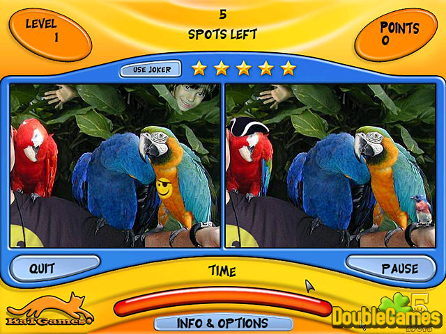 Verdenens yndlingsflekk-det-forskjellspill ! Dette flinke utførte spillet byr slik mye mer enn ventet, med et vennlig grensesnitt, vakker og original avbilder, og overraskelsesdetaljer. Isingen på kaken er at feilene tilfeldig er valgt ut, sikre som det er aldri det samme spillet to ganger. Forbereder at deg til å bli overgitt til dette fantastisk-seende, stor-lyd, hilarious versjon av en all-tid yndlings#.