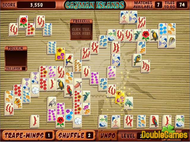 Ta en fabelaktig luksuscruise, Mah Jong stil, skuller du besøker 12 eksotiske øyer mens samling tiltrekkende keepsakes og quirky postkort ! Eller er footloose og innbilning befrir, Øy som Hopper til noe layout som du velger ! Uansett hvordan du skreddersyr din øyerfaring, vil det være en luscious behandler for din øyne ! Flislayouter strekker seg fra lett, til multi-layered uhyrligheter av 15 lag ! Bris gjennom dem med powerups liker Handel Vinder og Flisen Fokusere kjennetegn. Spark av din sko og undersøk øyene i dag !