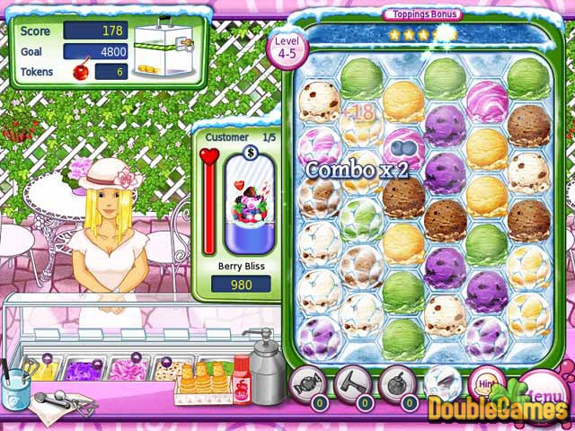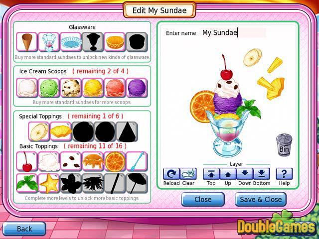 Hjelp Cindy lag hennes isfløtestue en suksess ! Kampøsekar og utformer din egen vakker isfløte sundaes som du faktisk vil bruke i spillet ! Lås opp ny smaker, topp og sundae design skuller du leker gjennom Historie Modus eller prøv din utholdenhet i Overlevelse Modus ! Du kan oppgradere fem forskjellige stuetemaer ved å anskaffe av 20 fargerike, munn-vannende sundaes og merenn 50 scrumptious topp ! Derfor griper en skje og utgraving i til Cindys Sundaes !