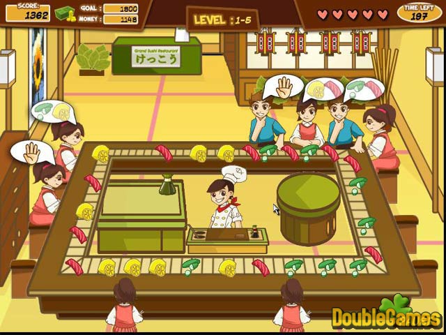 Lag din familie stolt å forvalting din meget egen sushi restaurant ! Behold din kunder som er glad ved å forberede deres rekkefølger vil kvikt som mulig. I tillegg til sushi kan kunder også bestille drikker, sauser, og desserter som, hvis du kan beholde opp, vil garantere glade kunder og stor tupper ! Med pengene tjener du, kan kjøpe du nyttige stigninger som vil forbedre din restaruant og øker din sjanser til å nå din daglige mål ! La Sushi Galskapen begynner !